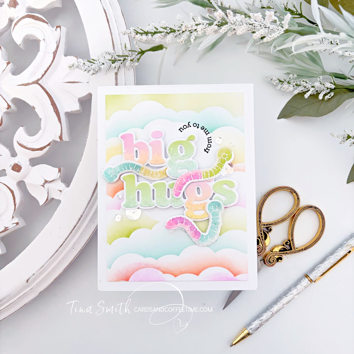 So grab a cup of coffee, gather your supplies and let’s get crafty! Thanks so much for stopping by, wishing you a day filled with crafty supplies, love, laughter and smiles! Sending crafty hugs, Tina. 💌