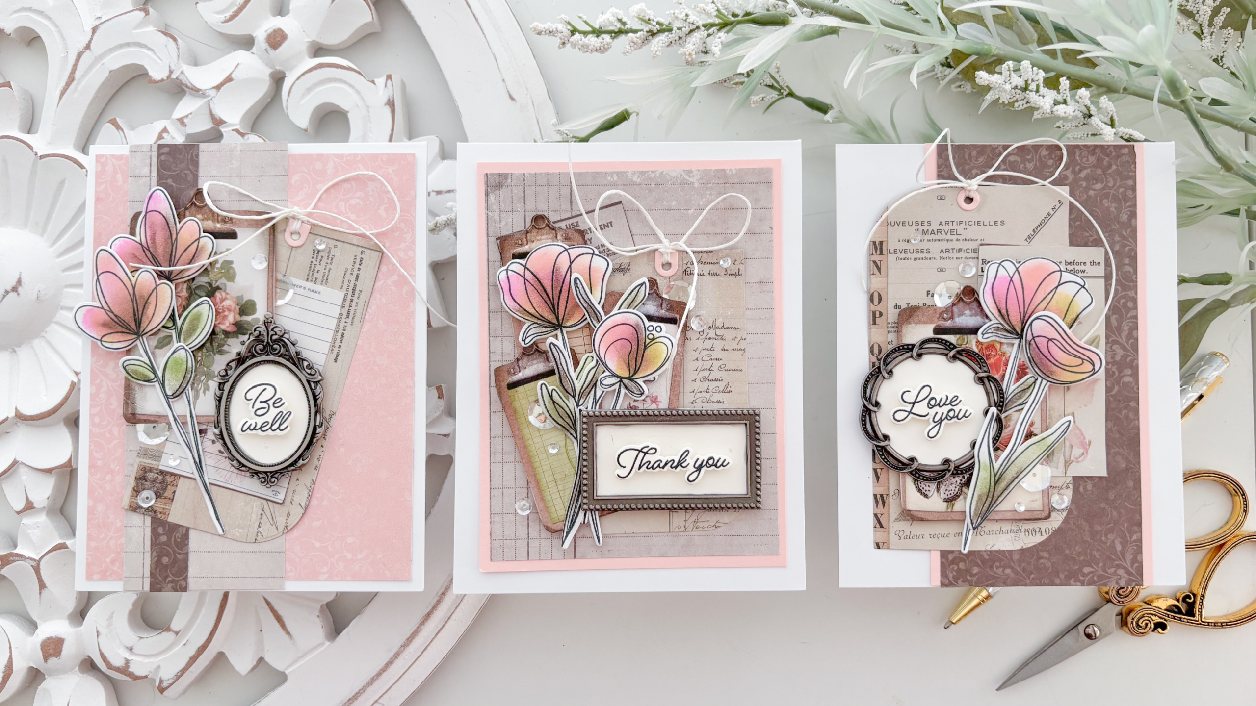 We’re making a “Be Well,” a “Thank You,” and a “Love You” card. I’m smiling at how these turned out—grab your supplies and let’s get started! I hope you have fun watching the process and learn some tips along the way!!