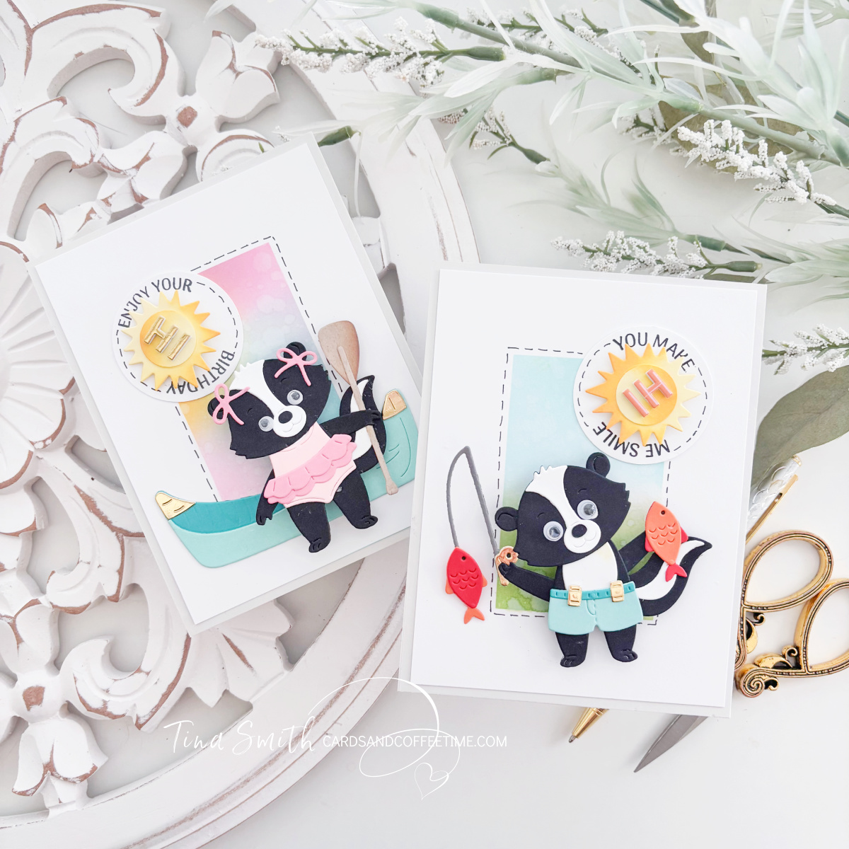 Using the Trailside Trio and Splash Days sets, I’ve put together two designs featuring googly eyes, wobbly bodies, and spinning surprises. If you’ve ever felt nervous about making interactive cards, I promise these motion elements are incredibly simple to put together. Watching a paper skunk actually “wobble” across a scene is pure joy—I can’t wait for you to see how easy it is to bring your own paper crafts to life.