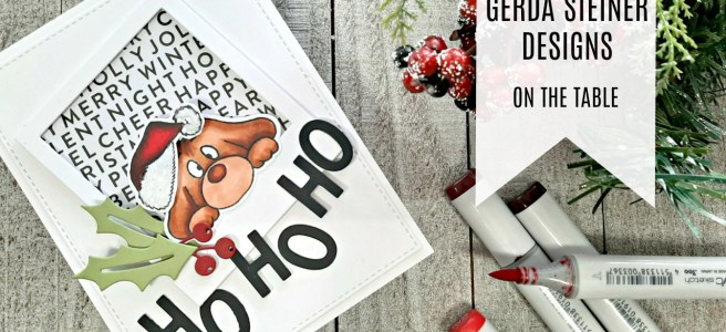 Christmas Card Tutorial Hello and Happy Wednesday Crafty Friends!  Today for my Gerda Steiner Design Team Project I created a HO Ho Ho Christmas card with the Gerda Steiner Designs On the Table stamp.  This is a 4x6 stamp with the cutest puppy and kitty!!  I love the the additional elements that can be used to customize your … Continue reading Gerda Steiner Designs – On The Table