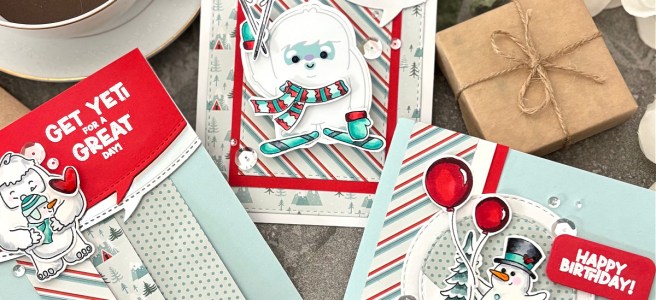 Three Cards with the Simon Says Stamp Get Yeti- January 2025 Card Kit! Hey there, my awesome paper crafting friends! I'm excited to share with you three fun abominable snowman Cards, using just the card kit contents and a few basic craft room dies. Inside the latest Simon Say Stamp January Card Kit called Get … Continue reading Simon Says Stamp – January 2025 Card Kit Inspiration & Tutorial