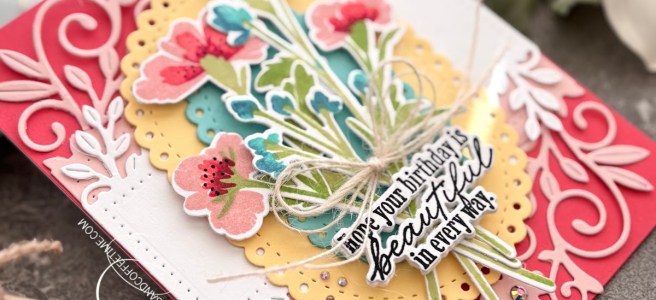 Hello, you talented creators of beautiful cards! I'm absolutely thrilled to share with you a birthday card with a beautiful bouquet of "Blooming Beauties", from Papertrey Ink. The Blooming Beauties Stamp Set have the perfect long stems to make a pretty bouquet, perfect for any birthday card! Be sure to visit the Papertrey Ink Shop … Continue reading Papertrey Ink – Blooming Beauties Inspiration and Tutorial
