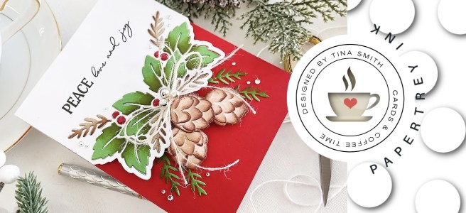 A Christmas card with the Papertrey Ink - Elegant Edges: Holly Berry Hello crafty friends! Tina here, I hope you are having a wonderful day! Today I am sharing a paper pieced Christmas card with layered pine cones. The lovely Elegant Edges: Holly Berries Die and a pine cone from the Into the Blooms: Pine … Continue reading Papertrey Ink – Elegant Edges: Holly Berry
